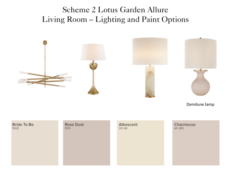 Scheme 2, which we named Lotus Garden Allure, features a stunning hand-blocked print from Lee Jofa.